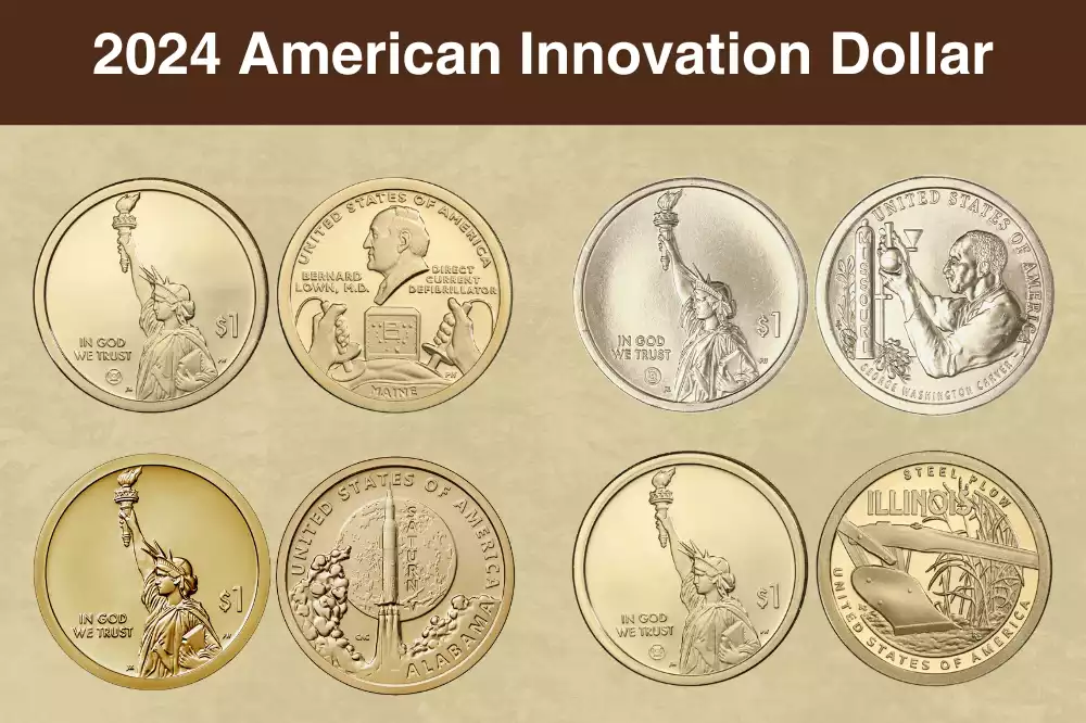 Each coin of the 2024 Innovation Dollars is available in multiple formats—circulation-quality strikes from Philadelphia and Denver mints, plus special proof and reverse proof versions from San Francisco.